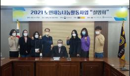 2021년 노인재능나눔활동지원 사업 설명회가 지난 27일(수) 오후 2시부터 서울 효창동 대한노인회 3층 회의실에서 사업 최초로 유튜브를 통해 비대면으로 개최되었다.이날 설명회는 노인 사회참여활동 중 가…