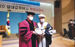 박용렬 인천연합회장도 함께 학위, 효문화 정착 노력 약속(사)대한노인회 중앙회 김호일 회장이 지난 19일(금) 오후 2시 인천 성산효대학원대학교(총장 최성규) 성산하모니채플홀에서 개최된 학위수여식에서…