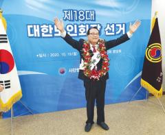 전체 대의원 272표 중 129표 획득, 압도적 승리 거둬노인회법 제정 법정단체화, 업무추진비 지급 등 공약제18대 대한노인회 중앙회 회장에 당선된 기호 1번 김호일 서울특별시 명예회장이 당선증을 받은 후 …