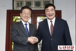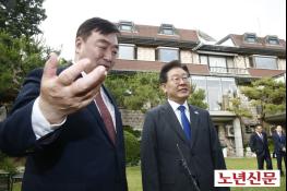[서울=노년신문] 국회사진기자단 = 더불어민주당 이재명 대표가 8일 오후 서울 성북구 중국대사관저를 방문해 싱하이밍 주한중국대사와 관저를 둘러보고 있다. 이날 이 대표와 싱 대사는 일본 '후쿠시마 오…