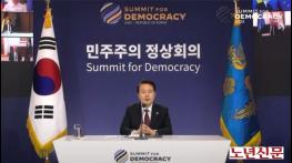 [서울=노년신문] 윤 대통령이 제2차 민주주의 정상회의에서 화상으로 연설을 하고 있다. 민주주의정상회의 홈페이지 캡쳐[서울=노년신문] 성수목 기자 = 윤석열 대통령은 29일 "민주주의 정상회의를 계기로 …