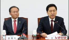 출고일자[서울=노년신문] 성수목 기자 = 김기현 국민의힘 대표가 10일 오전 서울 여의도 국회에서 열린 최고위원회의에서 발언을 하고 있다. 왼쪽은 윤재옥 원내대표. 2023.04.10. 20[서울=노년신문] 성수목…
