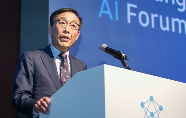 12일 삼성전자 서초사옥에서 열린 '삼성 AI 포럼 2018'에서 삼성전자 대표이사 겸 종합기술원장인 김기남 사장이 개회사를 하고 있다.