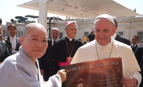 앞서 대해 스님은 지난 4월 25일 바티칸 성베드로 광장에서 열린 수요 일반알현에 참석해 프란치스코 교황에게 영화 ‘산상수훈’을 설명하고 DVD를 전달했다.