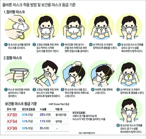 특히 마스크는 한 번 사용한 제품은 먼지나 세균에 오염됐을 수 있으므로 재사용하지 말아야 한다. 착용할 때에는 수건이나 휴지 등을 덧대지 말고 얼굴에 밀착하는 게 좋다.
