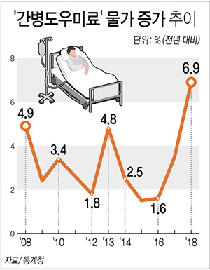 간병 수요 증가 · 최저임금 인상 등 영향… 작년 6.9% 올라