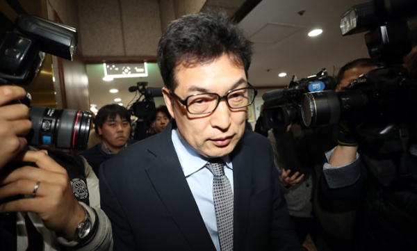 빙상계 절대강자'로 불리는 전명규 한국체대 교수(전 빙상연맹 부회장)가 21일 오후 서울 송파구 올림픽파크텔에서 빙상계 폭력·성폭력 사태와 관련한 입장을 밝힌 뒤 회견장을 나서며 취재진의 질문을 받고 있다.