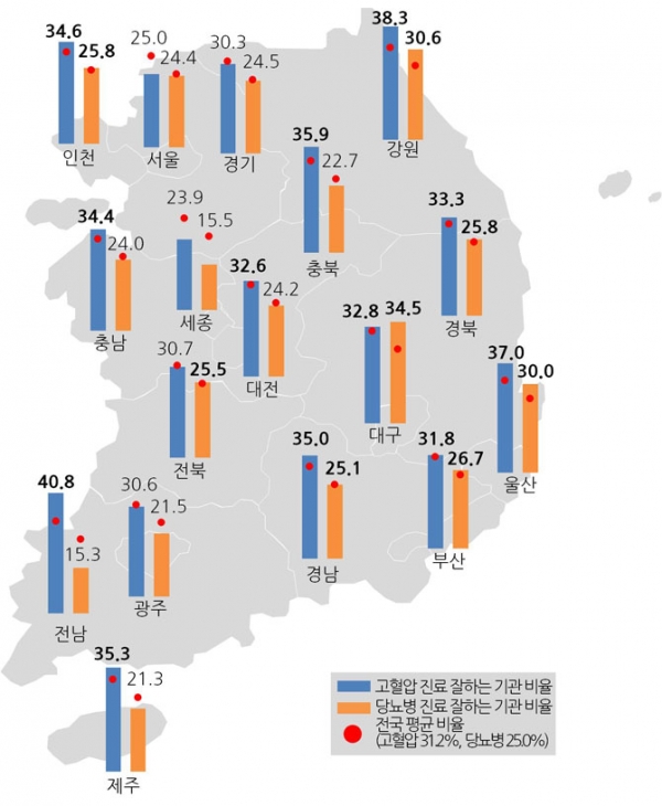 지난해 평가결과가 양호한 의원은 고혈압 5711개소, 당뇨병 3549개소이며 둘 모두 잘하는 의원도 2342개소나 됐다.