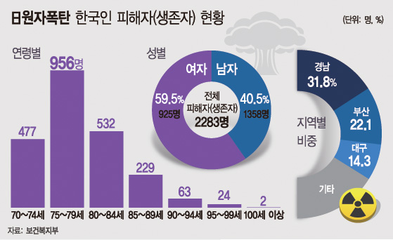 2017년 7월 ‘한국인 원자폭탄 피해자 지원을 위한 특별법’ 시행(2016년 5월 제정) 이후 이뤄진 첫 조사로 한국보건사회연구원이 지난해 6월부터 올해 3월까지 피해자 현황 등을 살폈다.