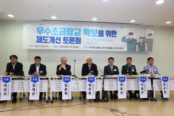 ‘우수초급장교 확보를 위한 제도개선 토론회’가 지난 9일 오전 10시 여의도 국회의원회관 제2소회의실에서 국회의원 신경민(더불어민주당) 성일종(자유한국당) 김민기(더불어민주당) 의원 공동주최로 열렸다.