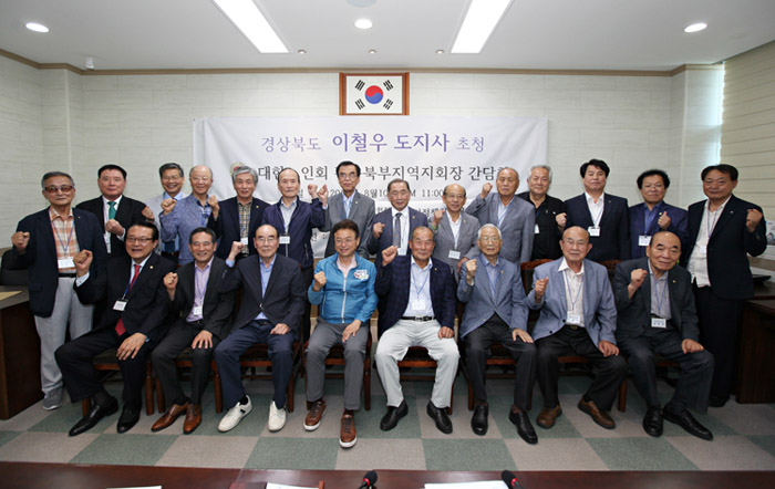 | 8월 10일 본지 주최로 경북 상주시의회(의장 정재현) 회의실에서 이철우 경북 도지사를 초청해 ‘대한노인회 경북북부지역 지회장 간담회’가 개최됐다. 사진 앞줄 왼쪽부터 김호일 대한민국헌정회 노인복지정책위원회 위원장, 정재현 상주시의회 의장, 안순덕 의성군지회장, 이철우 경북도지사, 양재경 경북연합회장, 박두호 구미시지회장, 도장섭 예천군지회장, 문재석 청송군지회장. 뒷줄 왼쪽부터 박호준 문경시지회장, 최중탁 노년신문사 부사장, 노재환 노년신문사 사장, 배춘병 상주시지회장, 이부화 김천시지회장, 최종구 군위군지회장, 유을상 인천연합회 이사, 김동량 안동시지회장, 탁대학 문경시의회 의원, 신명준 봉화군지회장, 장찬기 사회복지법인 해동재단 이사장, 오원갑 문경대학교 사회복지과 겸임교수, 정왕식 자연환경보호경북본부 본부장, 김효진 한국응용통계연구원 이사장. |