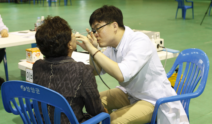 | 경북농협은 영양군민회관에서 영양농협과 함께 농업인행복버스 사업을 실시했다고 1일 밝혔다. 농업인행복버스 사업은 지역 내 농업인과 노인을 대상으로 무료 의료진료와 장수사진, 문화공연 등 농촌복지 종합서비스를 제공하는 사업으로 이날 경북대병원 내과, 마취통증의학과, 정형외과 등 전문 의료진이 지역주민 300여명에게 의료봉사를 실시했다.(사진=경북농협 제공) |