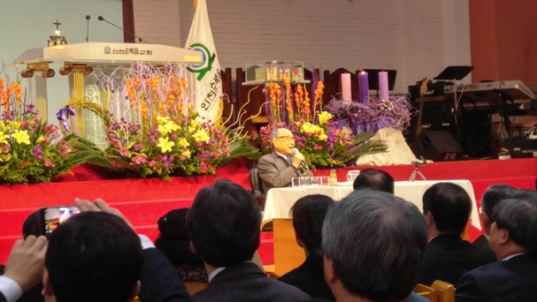 성산효대학원대학교(총장 최성규 목사)는 지난 4일 오전 10시 30분 인천순복음교회(최용호 위임목사) 대성전에서 개교 21주년을 기념해 김형석(99. 사진) 연세대 전 명예교수를 초청해 ‘윤리적 가치로써의 효’라는 주제로 특강을 열었다.