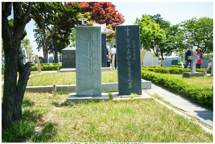 일본인 최초 우리 정부의 문화훈장을 받고 양화진 외국인 선교사 묘지에 묻힌 유일한 일본인 소다 가이치의 묘.