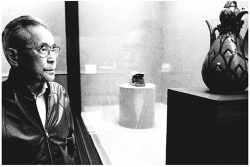 | 호암미술관에서 예술품을 관람하는 이병철 회장. |