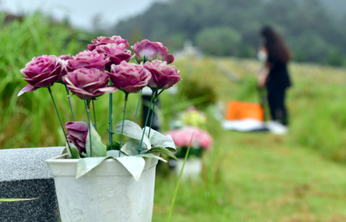 | 17일 오전 광주 북구 운정동 망월묘지공원묘역(광주시립묘지)에서 한 가족이 추석을 앞두고 미리 성묘를 하고 있다. |