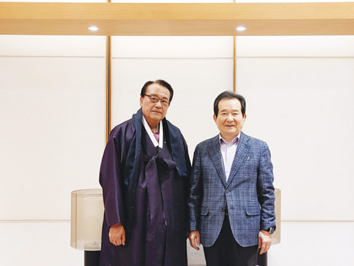 | 김호일 대한노인회장이 지난 8일 오전 서울 종로 총리공관에서 정세균 국무총리를 예방해 환담을 나눴다. 이 자리에서 김호일 회장은 △토 • 일 노인사원제도 △노인 버스무임승차권 제공 △주차장에 노인주차 공간 설치 △무료 입욕권 월 2매 제공 △대한노인회 회관 문제 해결 △코로나로 인한 경로당 출입폐쇄 해제 등을 건의했다. 이에 대해 정 총리는 여러 건의 사항에 대해 “충분히 공감하며 지원을 아끼지 않겠다. 앞으로 대한노인회 활동 지원을 적극 뒷받침 하겠다”고 약속했다. |