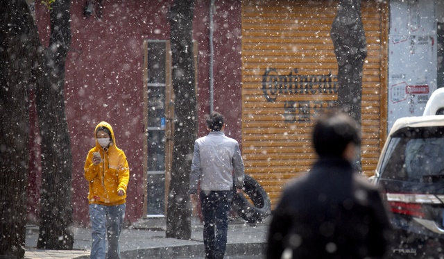 | 중국 베이징의 한 거리에 꽃가루가 날리고 있다 |