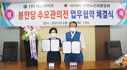 대한노인회 중앙회(회장 김호일)는 지난 15일 오후3시 서울 효창동 대한노인회 3층 회의실에서 (주)대노라이프(회장 유명례)와 업무제휴 협약을 맺었다.