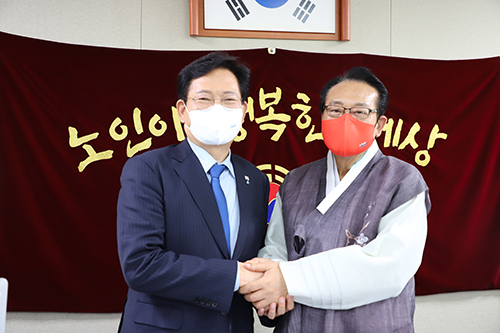 송영길 더불어민주당 대표가 지난 17일(금) 오후2시 대한노인회 김호일 회장을 내방해 임원진과 노인 복지향상을 위한 정책간담회를 가졌다.