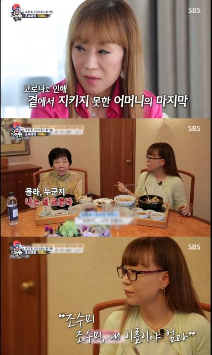 어머니의 말년에 대한 이야기도 공개했는데 "어머니가 오랫동안 치매를 앓으셔서 제가 매일 같은 시간에 맞춰 어머니께 전화를 드려 노래를 불러드렸다. 근데 점차 내가 누구인지 내 이름도 잊으셨다"며 눈물지었다. 이어 등장한 타 방송사 자료화면에서는 조수미의 이름도 기억하지 못하는 어머니의 모습이 공개되면서 '집사부일체' 멤버들을 눈물짓게 했다.