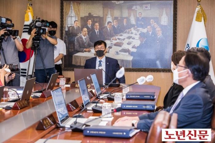 | [서울=뉴시스] 사진공동취재단 = 이창용 한국은행 총재가 25일 오전 서울 중구 한국은행에서 열린 금융통화위원회를 주재하고 있다. 2022.08.25.
