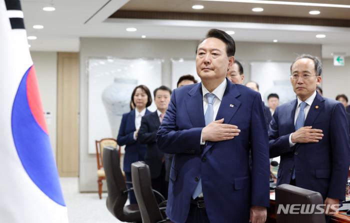 | [서울=노년신문] 성수목 기자 = 윤석열 대통령이 16일 서울 용산 대통령실 청사에서 열린 국무회의를 주재하고 있다. (대통령실통신사진기자단) 2023.05.16. [서울=노년신문]성 수목 기자= 윤석열 대통령은 16일 간호법 제정안에 대해 거부권을 행사했다. 이날 국무회의에서 간호법 제정안에 대한 거부권이 의결됐다. 현 정부 들어 양곡관리법에 이은 두번째 거부권 행사다. 윤 대통령은 이날 오전 용산 대통령실에서 국무회의를 주재하며 모두 발언에서 "유관 직역간의 과도한 갈등을 불러 일으키고 있다"며 "국민 건강은 다양한 의료 직역의 협업에 의해서 제대로 지킬 수 있는 것"이라고 말했다. 그러면서 "간호 업무의 탈 의료기관화는 국민들의 건강에 대한 불안감을 초래하고 있다"고 지적했다. 이어 "이러한 사회적 갈등과 불안감이 직역간 충분한 협의와 국회의 충분한 숙의 과정에서 해소되지 못한 점이 많이 아쉽다"고 했다. 윤 대통령의 모두 발언에서 간호법 제정안에 부정적 입장을 밝힌 만큼 재의요구권(거부권) 행사를 하겠다는 입장을 밝힌 셈이다.