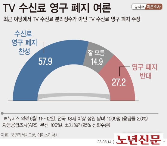 'TV 수신료' 영구 폐지…찬성 57.9% vs 반대 27.2% 2023-06-14 06:00:00