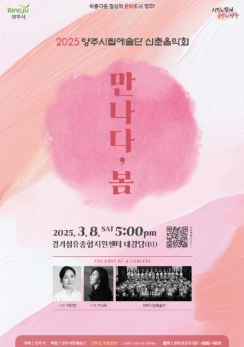 [노년신문, 성수목기자] 양주시가 오는 3월 8일 오후 5시, 경기섬유종합지원센터 지하 1층 대강당에서 ‘양주시립예술단 신춘음악회 '만나다, 봄'’을 개최한다고 밝혔다.