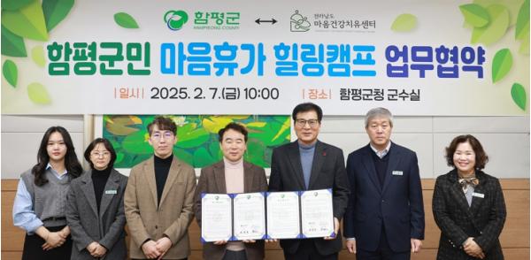 함평군이 9일 “전남 마음건강치유센터와 업무협약식이 지난 7일 함평군청에서 성공적으로 마무리됐다”고 밝혔다.