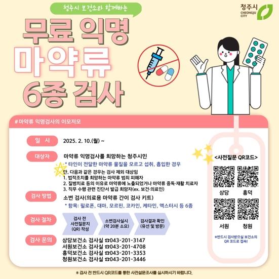 방영란 상당보건소장은 “마약 노출에 대한 시민들의 불안감을 해소하고 2차 피해도 예방할 수 있도록 검사 시행에 최선을 다하겠다”고 말했다.
