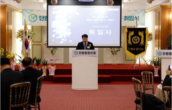 [노년신문, 성수목기자] 단양읍청년회 제5대 회장 취임식이 지난 7일 단양관광호텔 2층 에델바이스홀에서 열렸다.