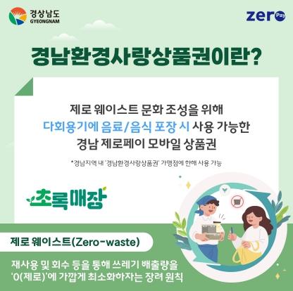 또한, 도민들이 환경사랑상품권을 편리하게 사용할 수 있도록 도내 1천여 개 초록매장을 지정‧운영하고 있으며, 도 누리집, 지맵(Z-MAP)에서 주변 초록매장을 쉽게 찾을 수 있다.