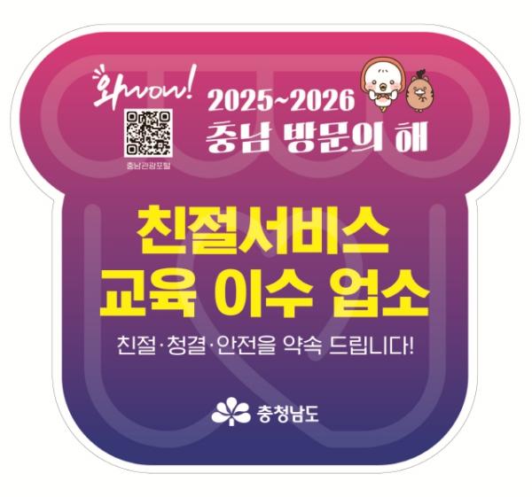 김범수 도 문화체육관광국장은 “관광업 최일선에 있는 식품접객업 종사자 대상 친절서비스 교육으로 도내 관광객들에게 맛있는 먹거리와 함께 즐거운 충남 관광의 기억을 선사할 것”이라면서 충남 관광에 대한 많은 관심과 발길을 부탁했다.