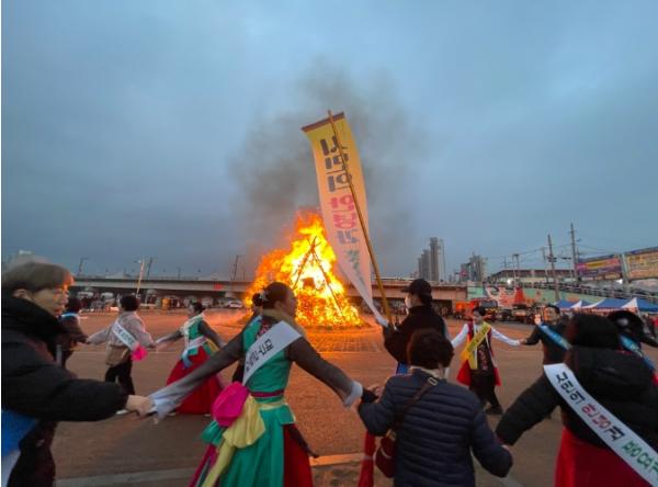 시민들은 직접 적은 소원지를 묶은 달집이 타오르자 다 같이 손을 잡고 달집 둘레를 돌며 소원 성취를 기원하고 서로 덕담을 나누며 흥겨워했다.
