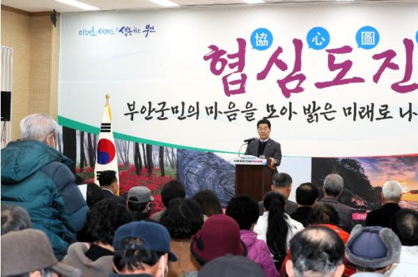 [노년신문, 성수목기자] 부안군 하서면은 13일 하서면 문화센터에서 권익현 부안군수와 면민 등 150여 명이 참석한 가운데 협심도진(協心圖進) 2025년 군민과의 희망소통대화를 성황리에 개최했다고 밝혔다.