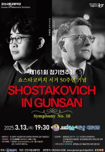 [노년신문, 성수목기자] 군산시립교향악단의 제161회 정기연주회 '쇼스타코비치 in 군산'이 오는 3월 13일 군산예술의전당 대공연장에서 화려하게 막을 올린다.