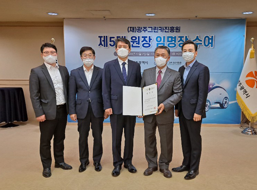 광주광역시 산하 (재)광주그린카진흥원은 지난 11월 2일 원내 비지네스룸에서 제5대 김덕모 신임원장에 대한 임명장 수여식을 거행했다.