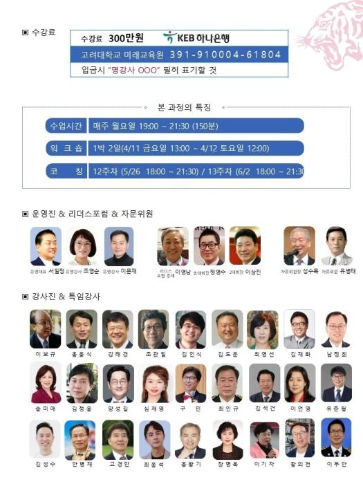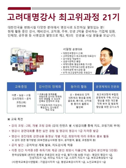 제21기 고려대학교 명강사 최고위과정 수강생 모집