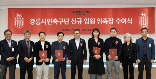 수여식에는 김홍규 강릉시민축구단 이사장, 신규 임원 비상근이사, 강릉시 문화관광해양국장, 강릉시민축구단장 등 10여명이 참석했다.