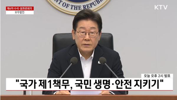 또 "언제나 말씀드리는 것처럼 국가의 제1 책무는 국민의 생명과 안전을 지키는 것"이라면서 "국민의 생명을 지키는 일에 작은 실수도 용납되지 않는다라는 점을 명확하게 말씀드린다"고 거듭 강조했다.