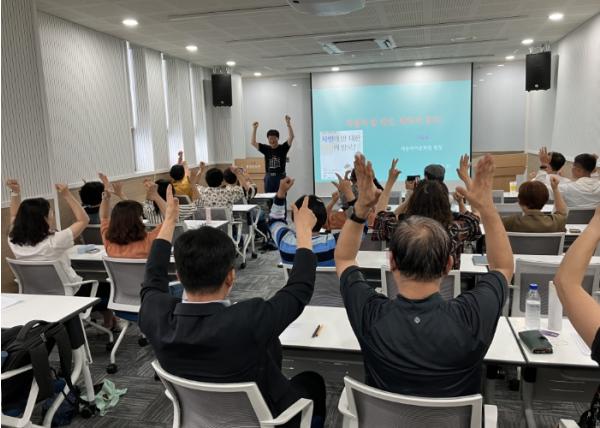 [노년신문, 성수목기자] 연천군 중앙도서관은 지난 19일 중앙도서관 시청각실에서 매월 군민들에게 인문학적 깊이를 더하는 특별한 시간, ‘다달이 인문학’ 하반기 첫 강연을 성공적으로 개최했다고 밝혔다. 이번 강연은 세종대학교 세종국어문화원장인 김슬옹 교수를 초청하여 ‘차별의 말 대신 배려의 말로’라는 주제로 진행되어 참가자들의 뜨거운 관심과 호응 속에 마무리됐다.