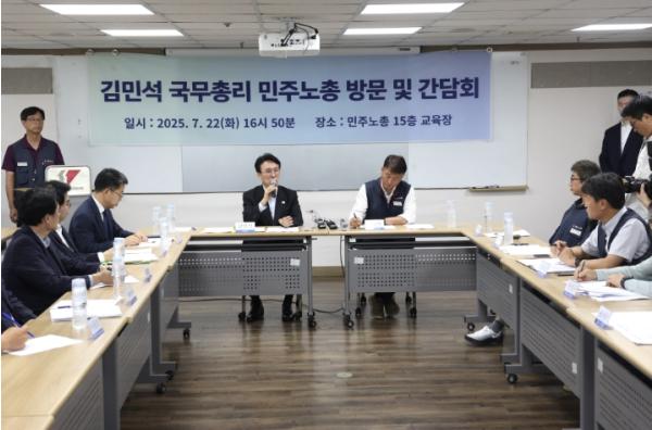 [노년신문, 성수목기자] 김민석 국무총리는 7월 22일 오후 한국노동조합총연맹(한국노총)과 전국민주노동조합총연맹(민주노총)을 방문하여 지도부와 인사를 나누고 환담의 시간을 가졌다.