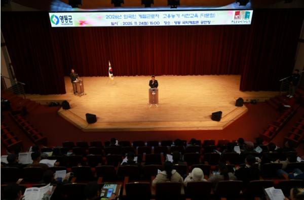 [노년신문, 성수목기자] 충북 영동군은 농촌의 만성적인 인력 부족 문제를 해소하기 위해 내년도 외국인 계절근로자 고용 희망농가를 대상으로 지난 24일과 26일 2회에 걸쳐 사전교육을 했다.