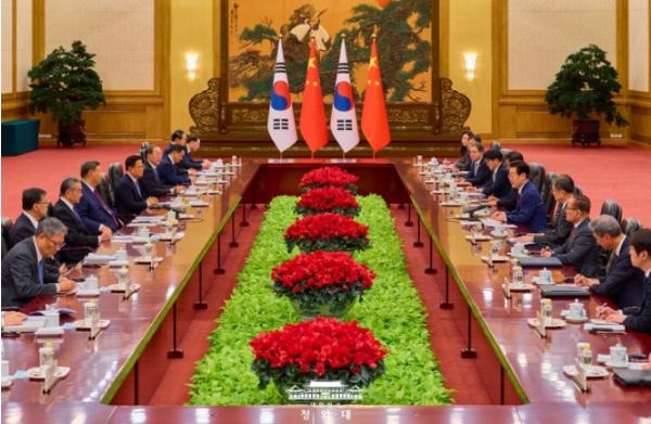 이 대통령은 모두발언을 통해 "이번 정상회담은 2026년 한중관계 전면 복원의 원년으로 만드는 중요한 계기가 될 것"이라며 "양국의 전략적 협력 동반자 관계를 되돌릴 수 없는 시대적 흐름으로 발전시키기 위한 노력도 변함없이 이어질 것으로 믿는다"고 말했다.
